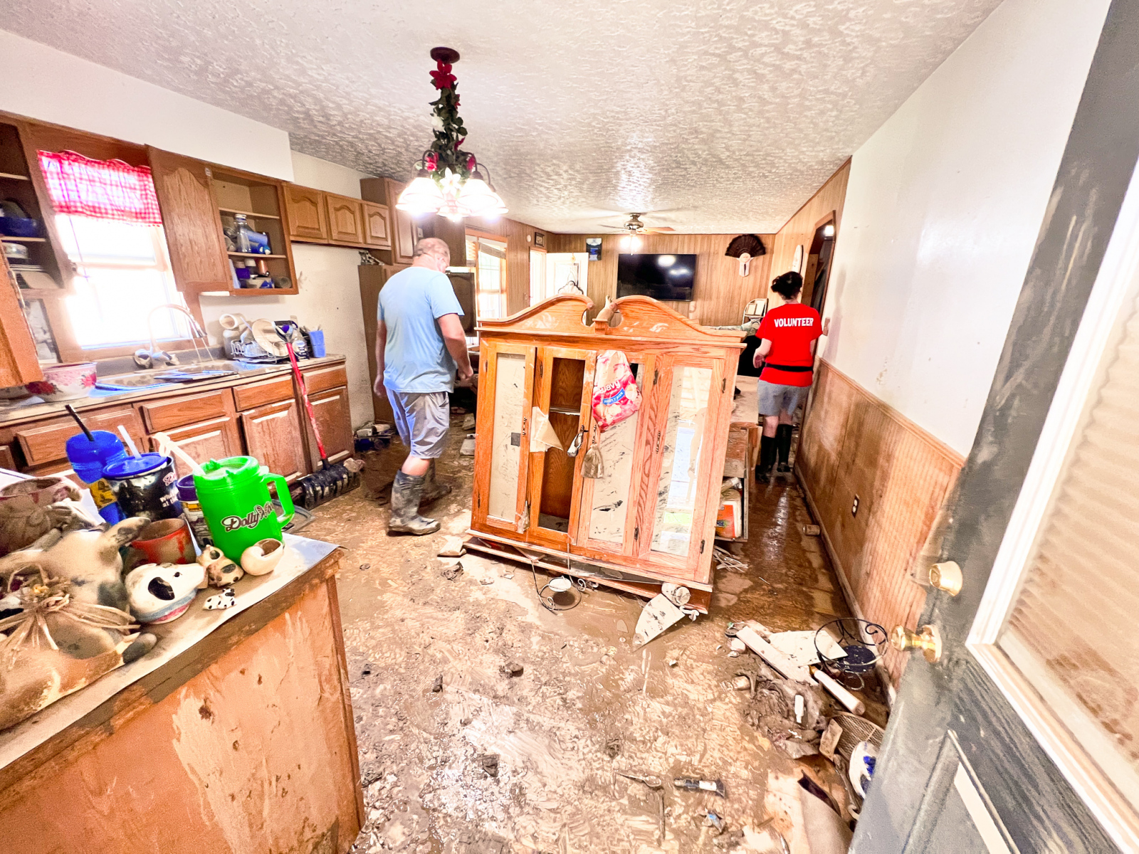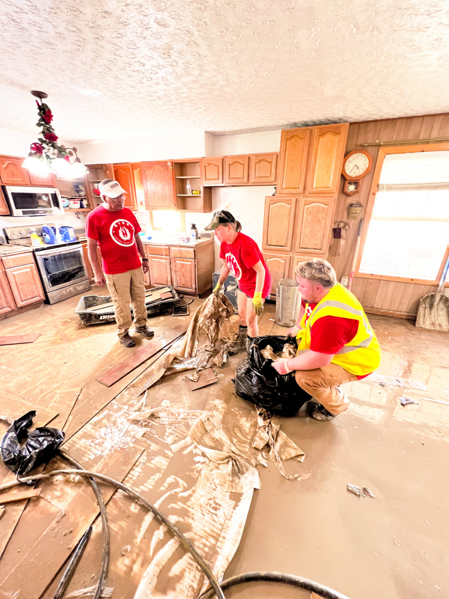 Our team was dispatched to the Strong Family home today. The Strong family has been living on the land for over 150 years and have never seen a flood this devastating. Passed down from generation to generation, he hand built his home for his wife Ruth. There they raised their two boys. While they did have time to grab a few of their most important possessions… it was not nearly enough. Our team worked alongside them to save what we could and cleared out all of the heavy furniture. Our team is grateful that we could give them some hope and help them begin to recover.